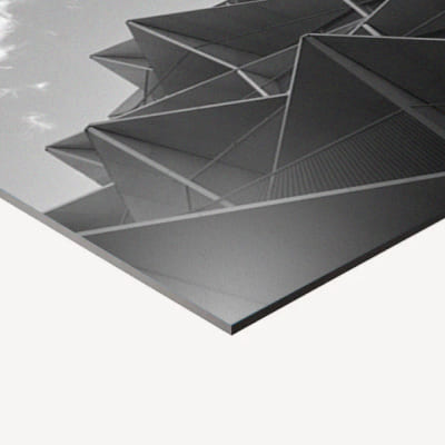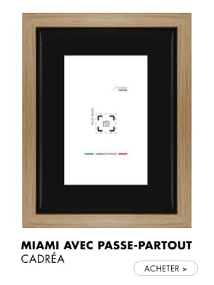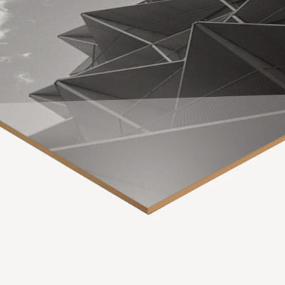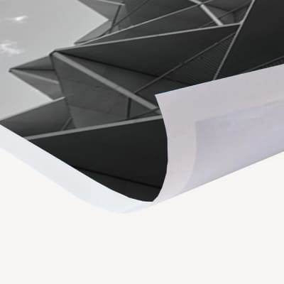 Impression du visuel sur papier et laminage sur medium, avec film de protection mat. Élégant et sans reflets, idéal pour une ambiance sobre et raffinée.