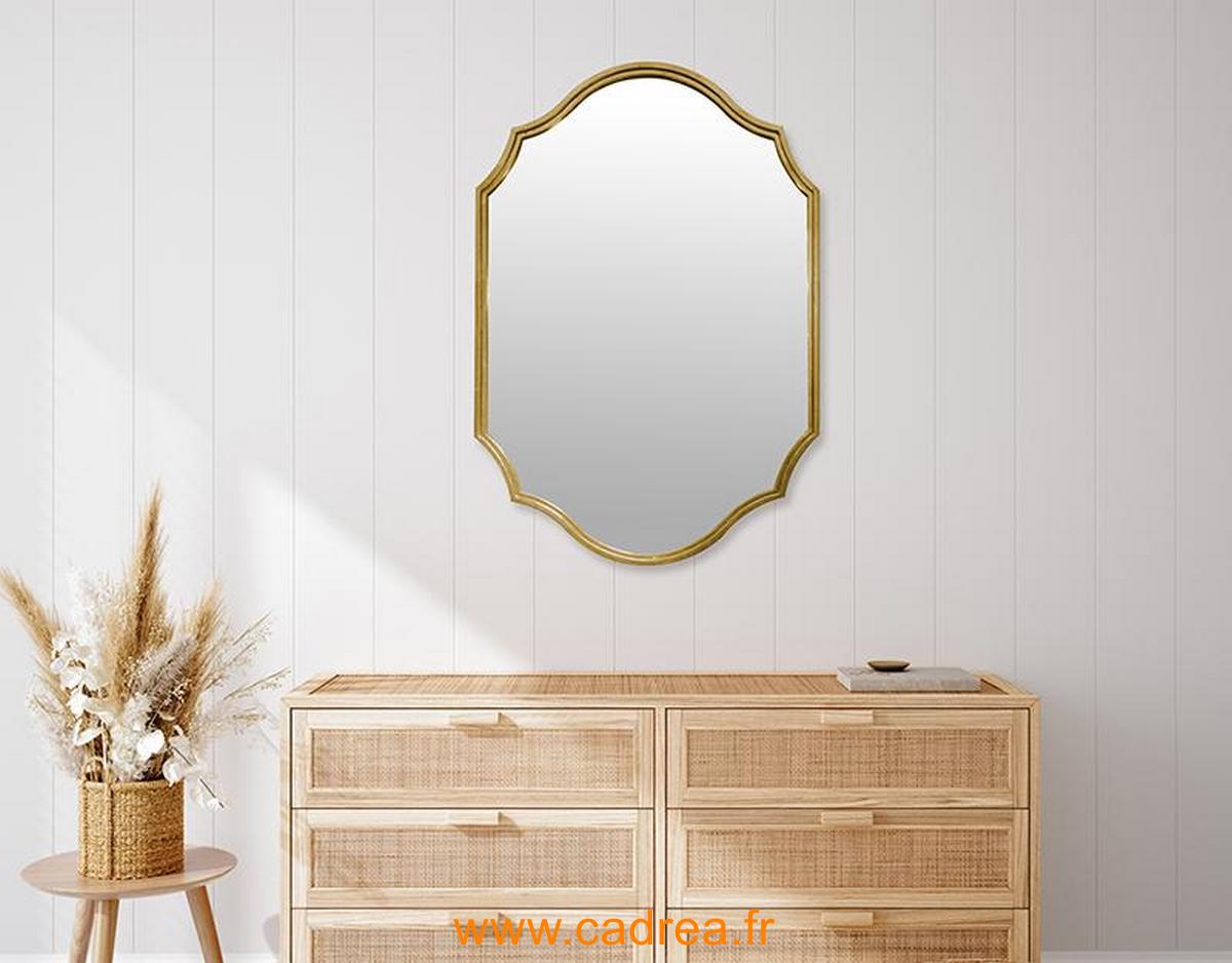 Miroir Lise en métal doré, dimensions 60x90 cm. Apportez une touche d'élégance à votre intérieur avec ce miroir. Son design raffiné et ses dimensions généreuses sont parfaits pour illuminer votre intérieur. A accorcher au mur.