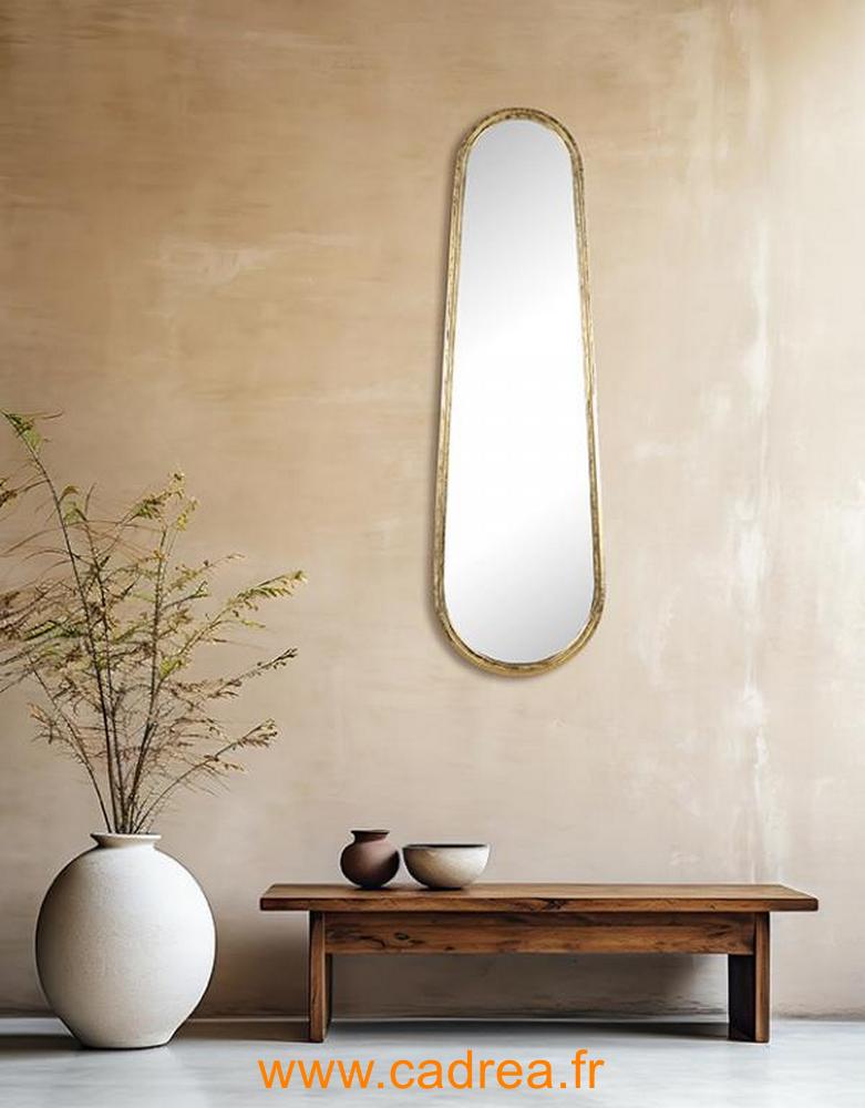 Miroir long avec moulure en métal doré. A accrocher au mur, ce miroir s'intégrera facilement à votre intérieur. Dimensions: 30x100cm. A accrocher verticalement ou horizontalement.