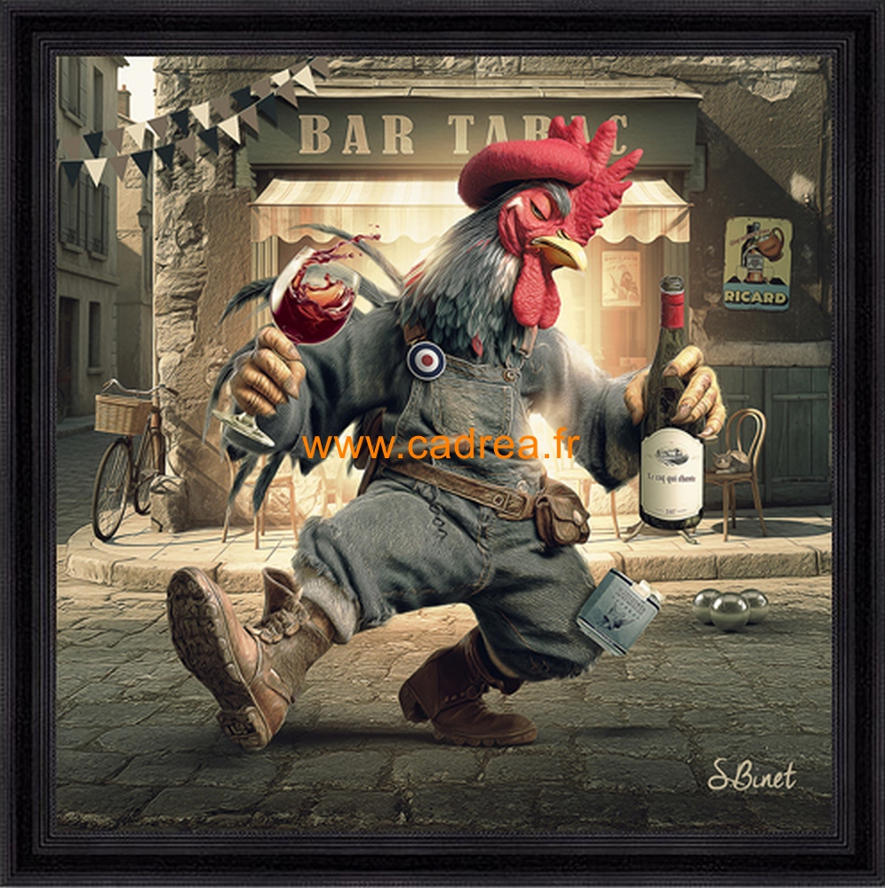Tableau pvc encadré Coq Ivre, Sylvain Binet