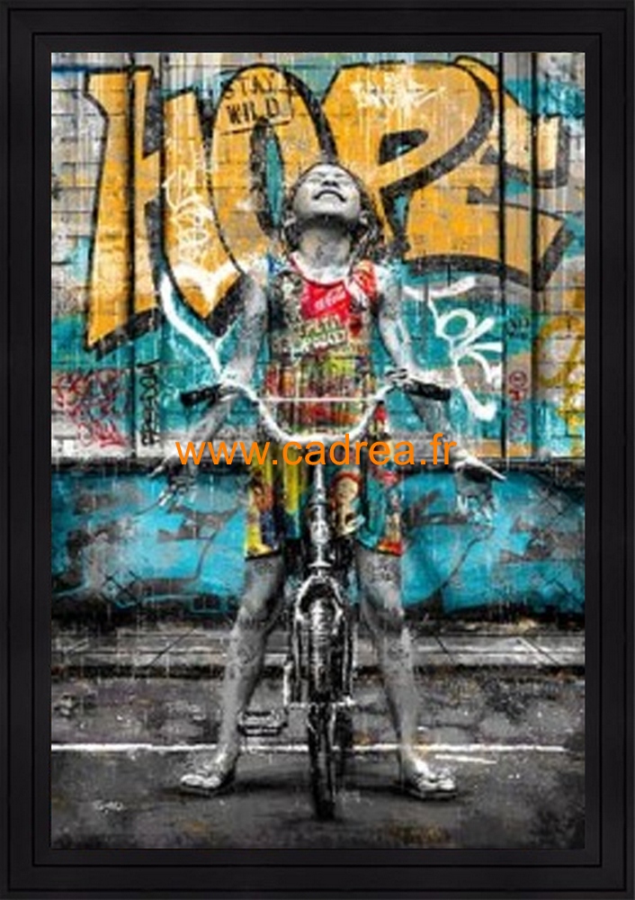 Image encadrée La fille et son velo sous la pluie, Romaric