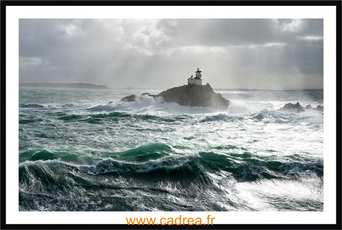 Tableau pvc encadré Phare de Tevennec - Tempête Ciaran, Mathieu Rivrin