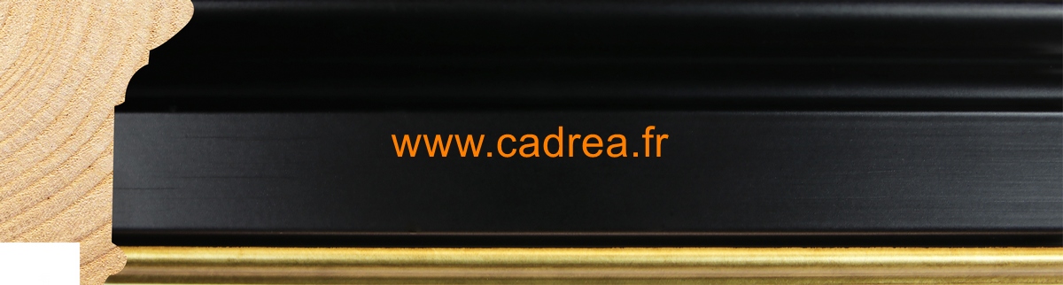 Baguette bois Profil Braque, plaqué noir et filet orLargeur baguette : 42 mm